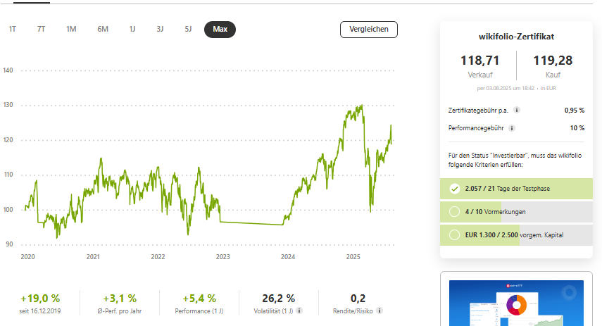 Damit dieses Wikifolio investierbar wird, benötige ich eure Unterstützung! Ich brauche mindestens zehn Vormerkungen mit einem Gesamtkapital von mindestens 2.500 EUR. Eure Vormerkungen sind unverbindlich und helfen mir, das Interesse an meiner Handelsidee zu zeigen.